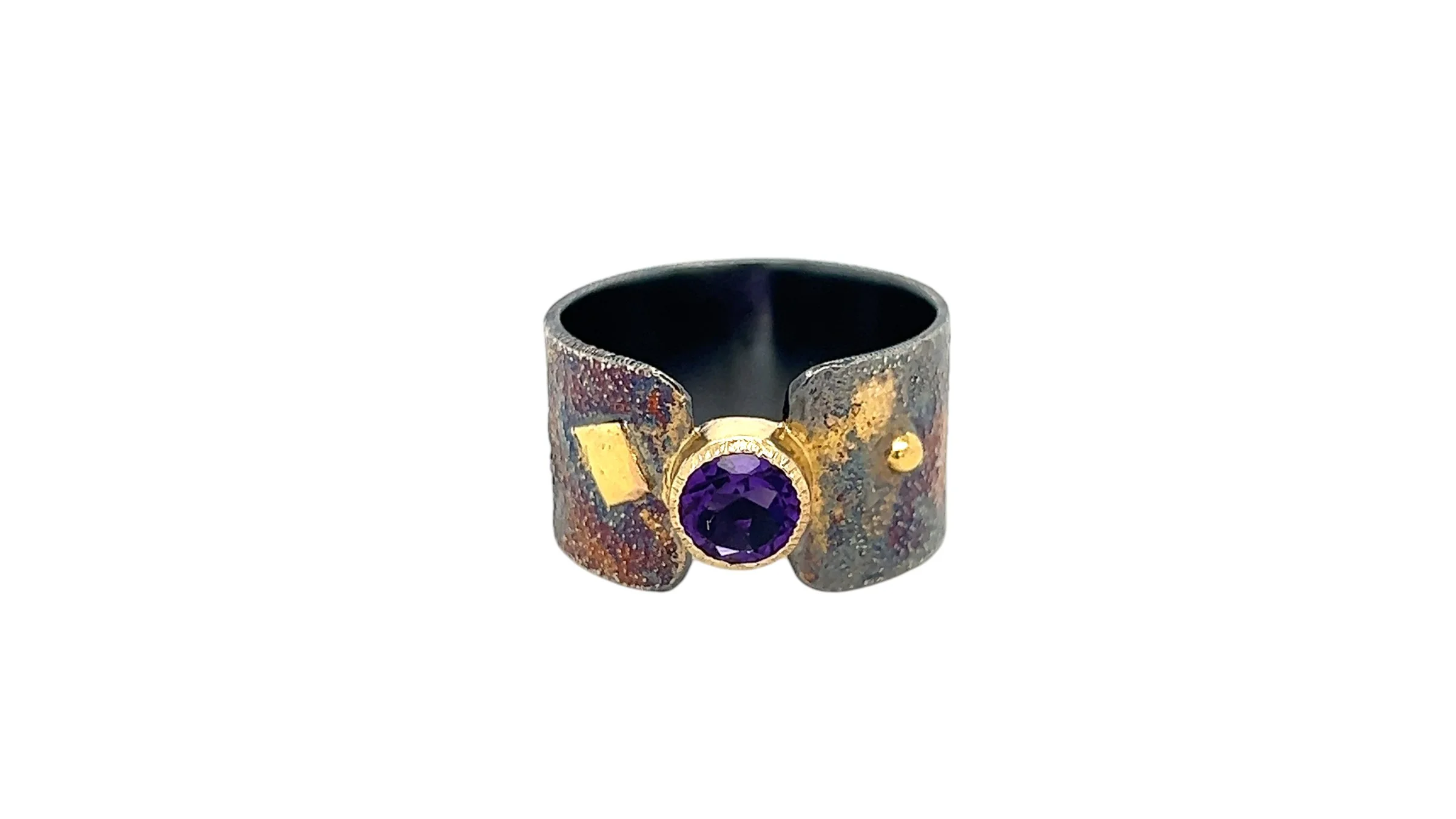 Featured here is an Amethyst Seed Cuff, where rich violet tones meet warm golden nuggets for a striking contrast that feels both bold and refined. A piece designed to stand out while carrying the quiet magic amethyst is known for.